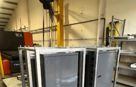 These electrical cabinets has been manufactured and assembled using a high degree of precision engineering and manufacturing techniques. Fixed to a structural box section frame which has been hot dipped galvanized to prevent rusting.