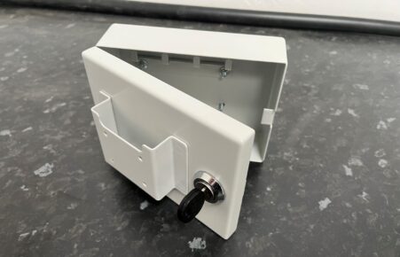 Keyed lock boxes being supplied to a customer in the transport services. Laser cut, folded, welded, pem-serted then powder coated in a light grey. These lock boxes were then fitted in house with hinges and keys.